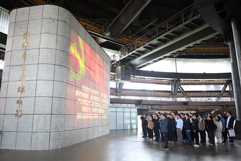 在講解人員的引導下,大家登上三高爐40米觀景平臺俯瞰首鋼園全貌,昔日“鋼鐵巨龍”的輝煌過往歷歷在目,一代代工人先輩與黨員同志的辛勤付出,凝聚成砥礪前行的強大精神力量。在9.7米出鐵平臺,通過觀看《鋼鐵是這樣煉成的》光影沙盤,直觀領略了“黨建+技術創新”讓工業遺產煥發出新生機。最后,全體人員莊嚴宣誓,重溫入黨誓詞,將紅色基因與奮斗精神融入心間。
