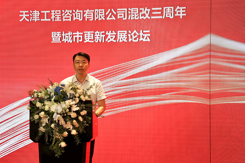 天津市國資委改革處副處長袁薔致辭。代表市國資委向天津咨詢混改三周年表示祝賀,也向關(guān)心和支持天津國資國企改革發(fā)展的各界朋友表示感謝。天津咨詢混改三年引進了先進的管理理念和經(jīng)營機制,實現(xiàn)了國有資產(chǎn)的保值增值,扎根天津、服務天津,加深了津滬兩地國資國企之間的合作與共贏。希望天津咨詢保持向好發(fā)展。不斷拓寬經(jīng)營思路,健全經(jīng)營機制,努力挖掘自身優(yōu)勢,提高企業(yè)核心競爭力,為混改后天津國資參股企業(yè)保持更好更快發(fā)展樹立典型。希望天津咨詢服務天津發(fā)展。主動融入和服務“十項行動”,持續(xù)推進“三新”“三量”工作,抓住有利時機,充分發(fā)揮在城市更新、資產(chǎn)盤活等方面的咨詢技術(shù)優(yōu)勢,為天津的城市建設(shè)和經(jīng)濟發(fā)展“添秤”。希望天津咨詢發(fā)揮紐帶作用。繼續(xù)穩(wěn)步推進改革,將上海國企的先進理念引入天津,進一步發(fā)揮好上海國資和天津國資之間的紐帶作用,為推動雙方互利共贏做出積極貢獻。
