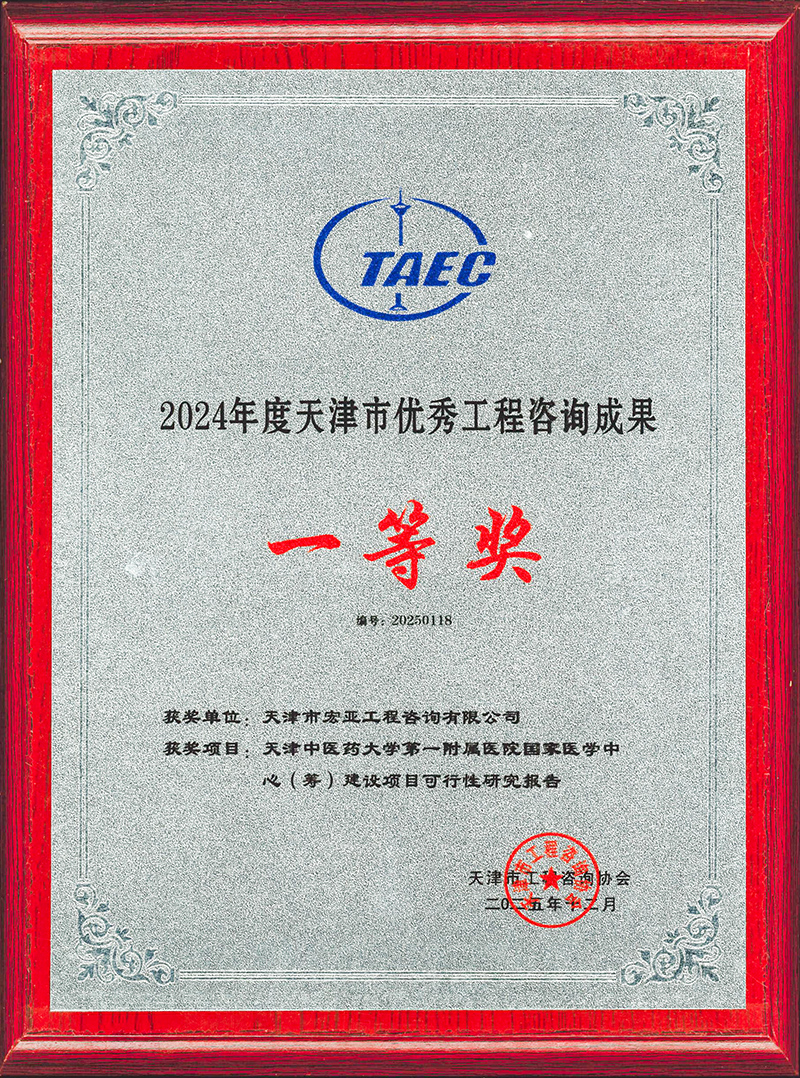 近日,在天津市工程咨詢協(xié)會(huì)第五屆五次會(huì)員大會(huì)暨第五屆理事會(huì)第五次會(huì)議上,天津咨詢所屬宏亞工程咨詢有限公司編制的《天津中醫(yī)藥大學(xué)第一附屬醫(yī)院國(guó)家醫(yī)學(xué)中心(籌)建設(shè)項(xiàng)目可行性研究報(bào)告》榮獲2024年度天津市優(yōu)秀工程咨詢成果一等獎(jiǎng),同時(shí)被授予2025年度優(yōu)秀會(huì)員單位榮譽(yù)稱號(hào)。