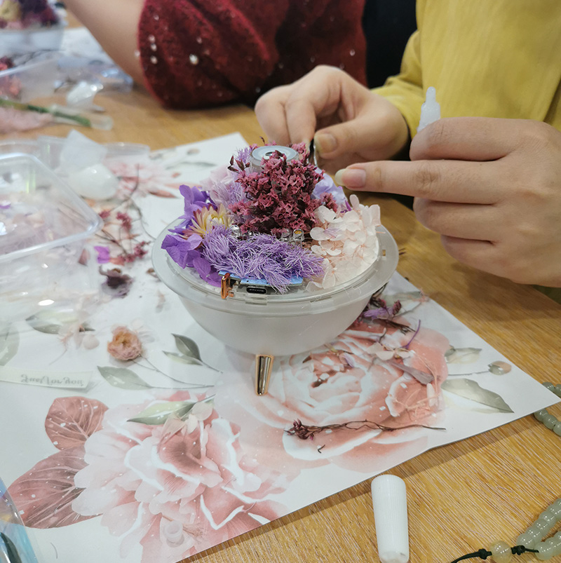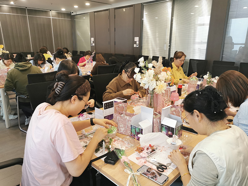 永生花加濕器手工DIY活動中,玫瑰、繡球、滿天星等花材琳瑯滿目。在專業(yè)老師指導(dǎo)下,女職工們精心選材、修剪搭配,將一朵朵永生花融入加濕器,創(chuàng)作出既實用又富有藝術(shù)感的手工作品。大家在動手創(chuàng)作中感受匠心之美,在交流協(xié)作中增進情誼,現(xiàn)場溫馨熱烈,盡顯熱愛生活、崇尚藝術(shù)的美好風(fēng)貌。