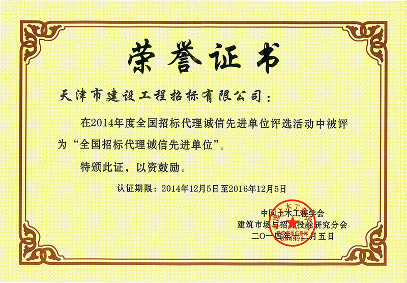 2014年全國招標代理誠信先進單位