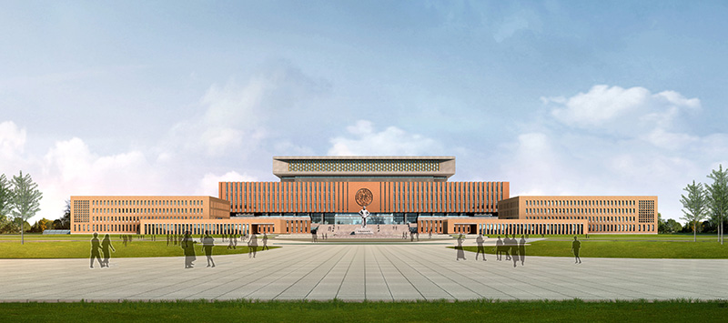 南開大學新校區(qū)位于天津市津南區(qū)海河之畔的"海河教育園"內(nèi),占地250公頃,總建筑面積將控制在130萬平米。首期建設(shè)74萬平米,最大單體面積5.67萬平米,最大高度46.8米,最大跨度28.4米,投資36.15億元。該項目榮獲“海河杯獎”,其中圖書館單體項目獲得2016年“魯班獎”。